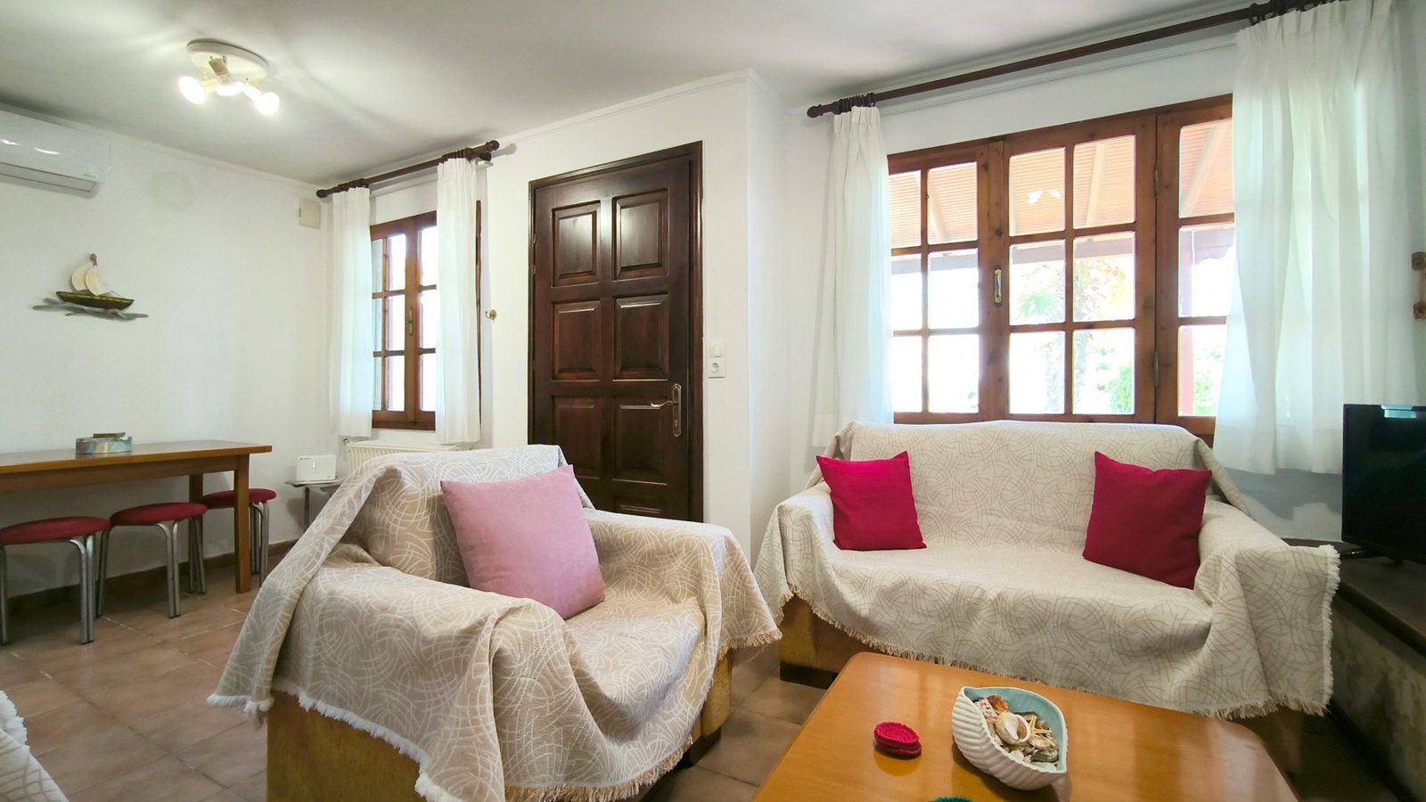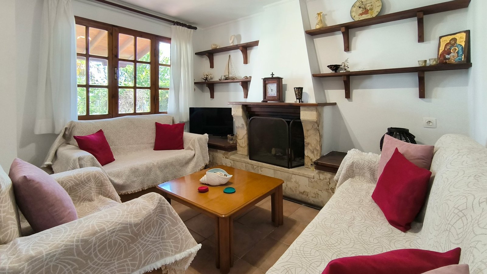 The house can accommodate up to 6 people including children. It has a single living room and kitchen, 2 bedrooms with double beds, 1 small bedroom with a single bed, WC, 2 TVs, wifi. There is a fully equipped kitchen, filter coffee maker, toaster, hair dryer and towels. Second separate kitchen and laundry room. It has air conditioning, central heating and a large fireplace for the winter.
