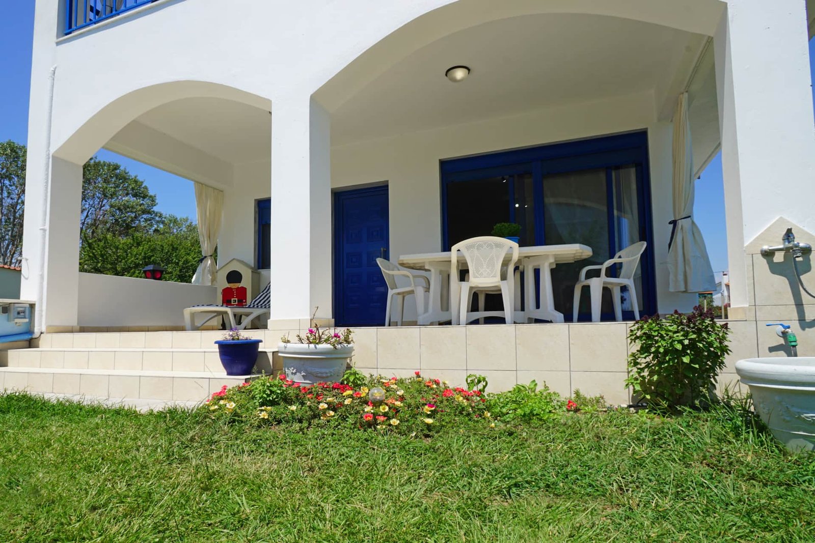 The villa also has a beautifully landscaped courtyard, where children can play for endless hours, and you can watch them from the terrace enjoying aromatic coffee.