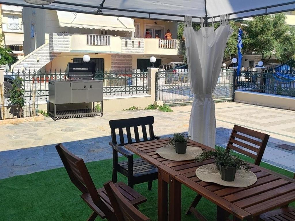 Sun Terrace and Garden: Villa Stella in Nea Peramos offers a sun terrace and a lush garden. Guests can relax in the outdoor seating area or enjoy the picnic area. The property features free WiFi throughout.